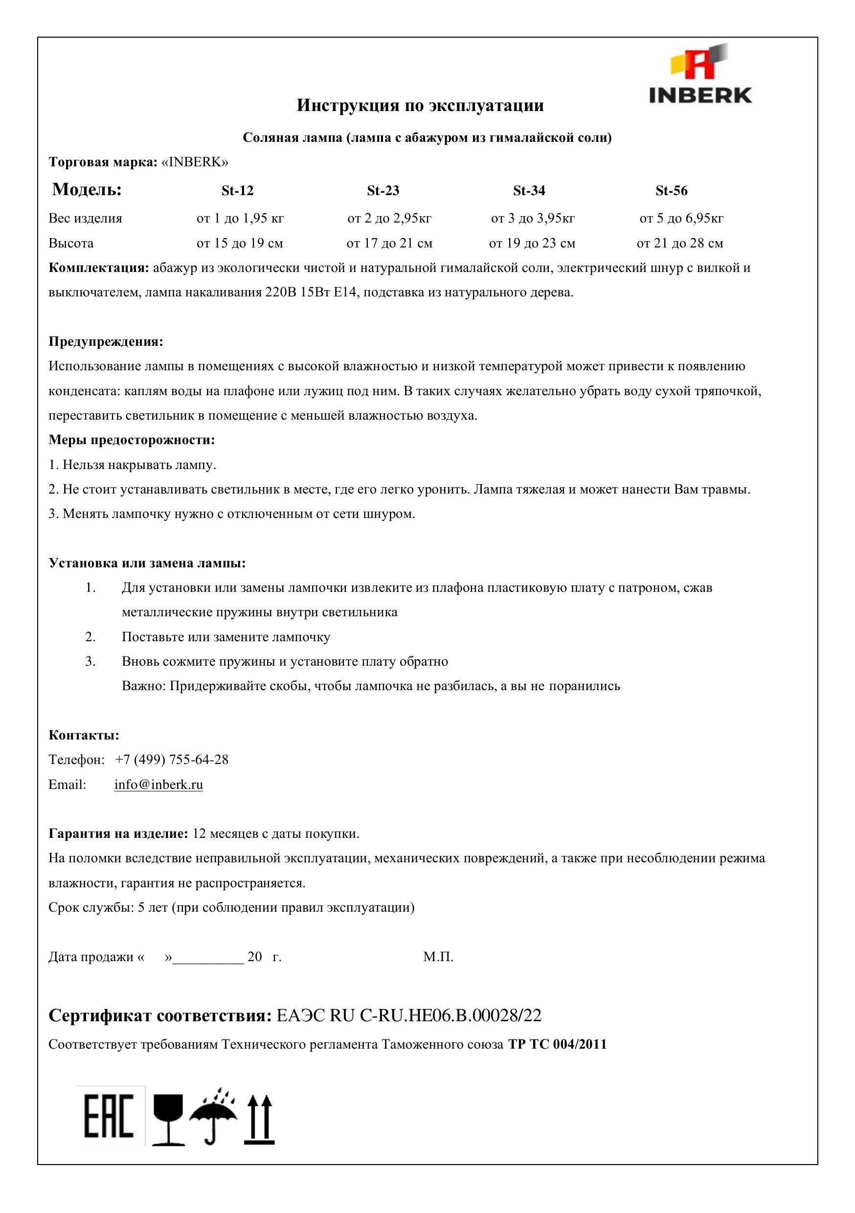 Кабель с цоколем Е14 и диммером | 1 шт. |